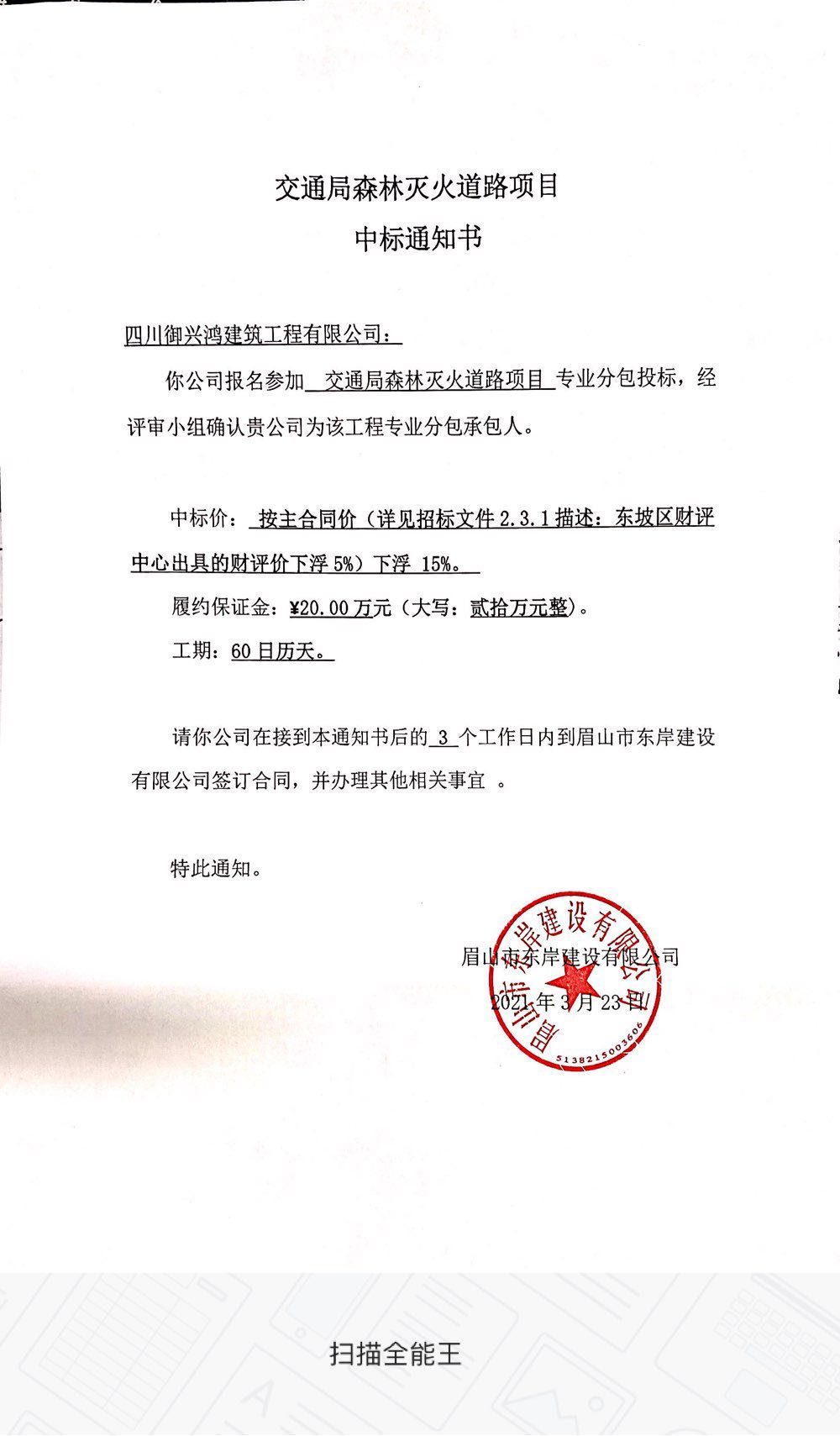 交通局森林滅火道路項目專業(yè)分包中標(biāo)公示
